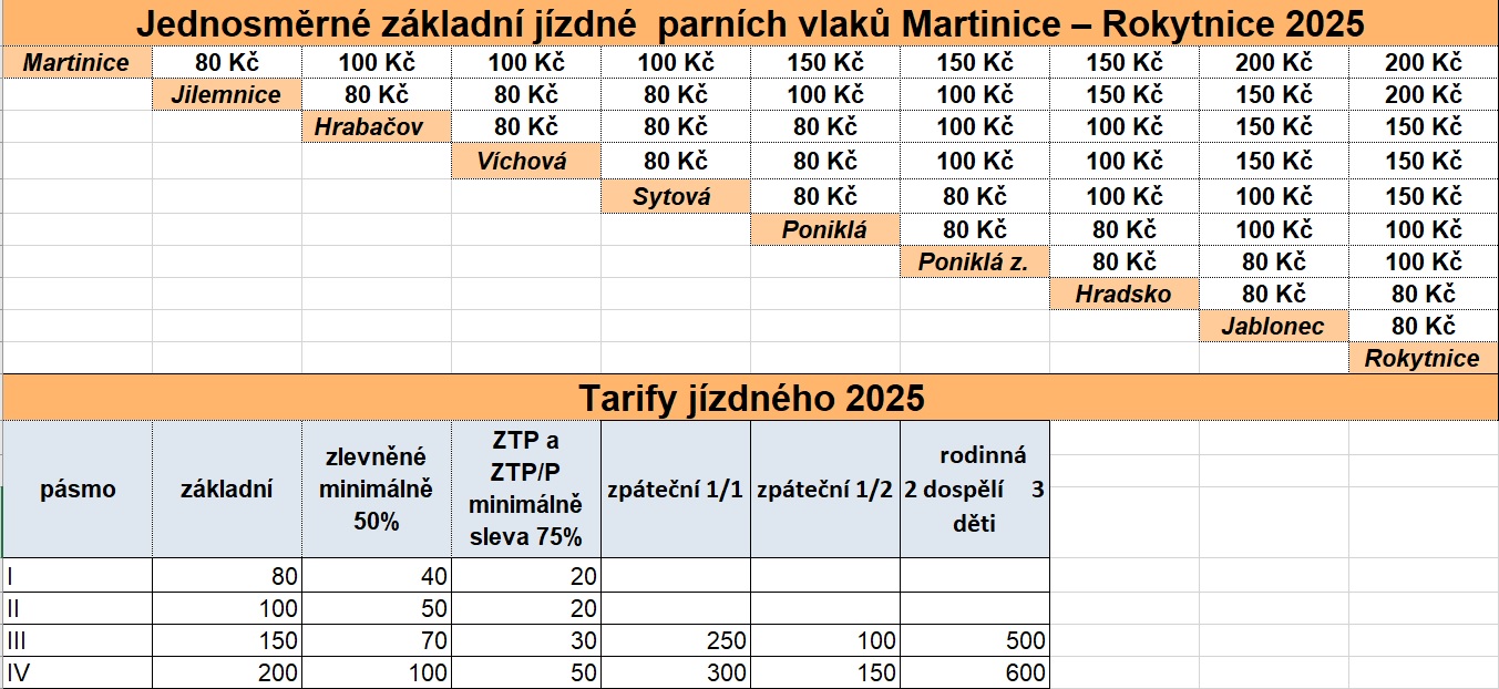 Ceník jízdného návoz parního vlaku.